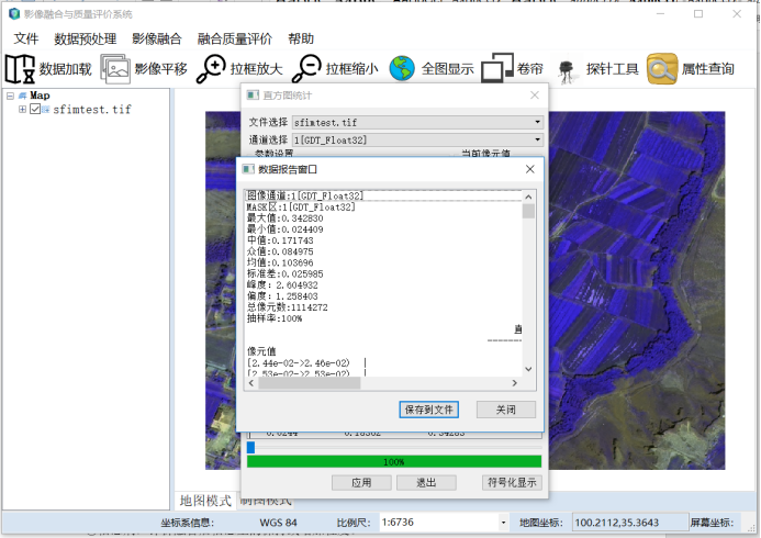 近年來,隨著圖像處理技術(shù)的蓬勃發(fā)展圖像融合技術(shù)也日趨成熟,對融合圖像的融合質(zhì)量評價越來越重要,尤其對多源遙感影像融合質(zhì)量的性能評估,是一項具有重要意義的工作。融合影像性能質(zhì)量的優(yōu)劣直接影響工作人員對下一步融合圖像的解譯及研究人員對融合算法的改進(jìn)都有著非常重要的作用。所以,對遙感影像進(jìn)行定性、定量的性能評價分析尤為重要.,軟件實現(xiàn)了對遙感影像的基礎(chǔ)操作、遙感影像的預(yù)處理、影像的融合、及實現(xiàn)融合后影像質(zhì)量評價參數(shù)的運算展示。